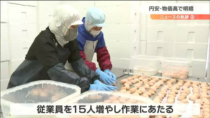 円安の影響で海外からの需要が増え、輸出量が去年に比べ▼2倍以上に増えたのです。この会社では従業員を15人増やし、勤務を交代制にして早朝から深夜まで作業にあたっています。