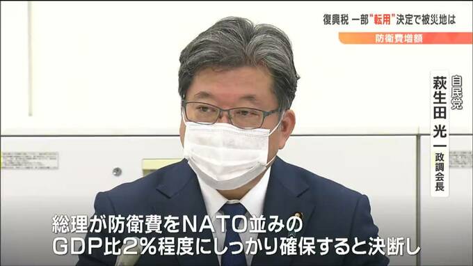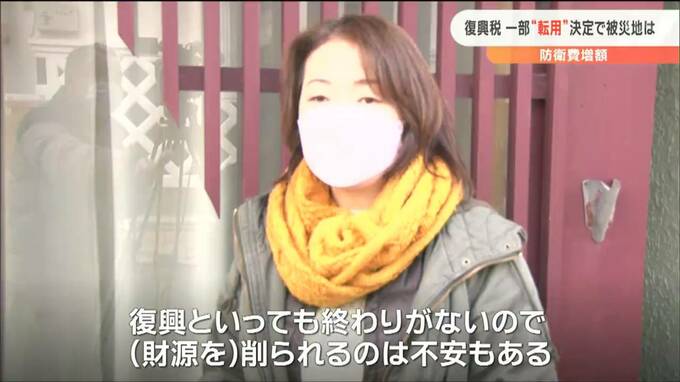 この中で、復興特別所得税の税率を1%分を転用する形で、防衛目的の新たな税を新設します。復興財源は、課税期間を延長することで賄い、総額を削るわけではないと説明していますが、被災地の反応は?