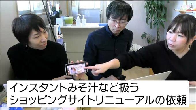 この日は、メンバーと市内の水産加工会社を訪れました。主力商品のインスタントみそ汁などが購入できるサイトのリニューアルの依頼を受け、打ち合わせに臨みました。