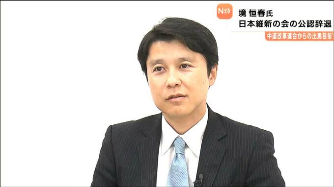 宮城5区の境恒春氏が維新の公認辞退 中道改革連合から立候補目指す方針 2026年1月21日(水) 18:28 国内 宮城5区では、日本維新の会から衆議院選挙への立候補を予定していた境恒春氏が、党の公認を辞退したことがわかりました。今後は中道改革連合からの出馬を目指すということです。日本維新の会によりますと、宮城5区…