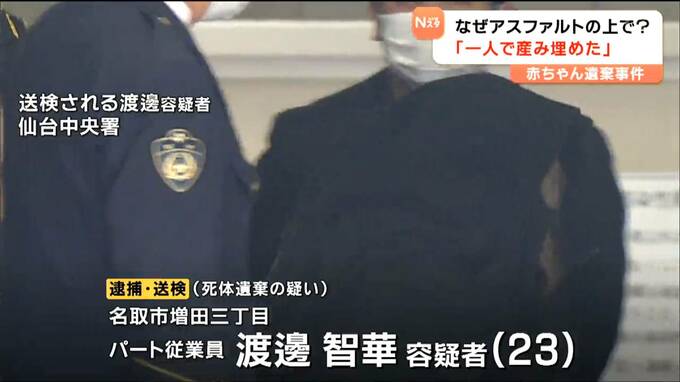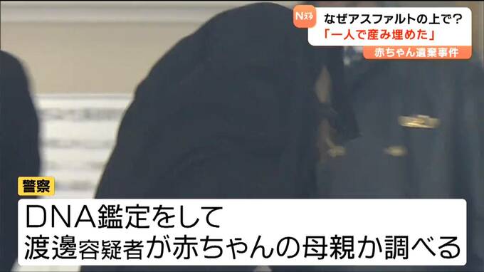 現場では、遺体を埋めていたとみられる穴も見つかり取り調べに対し、渡邊容疑者は、「自宅で一人で産み、埋めた」などと容疑を認めているということですが、なぜ赤ちゃんがアスファルトの上で見つかったかはわかっていません。