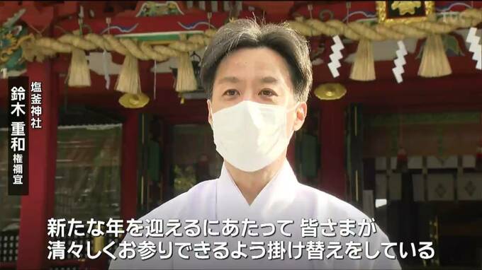 新年を前に塩釜神社では20日、毎年恒例の大しめ縄の掛け替えが行われました。