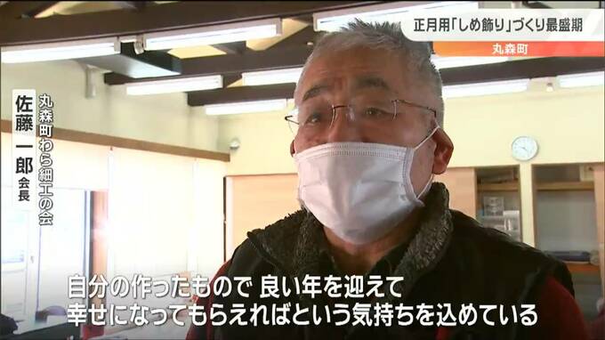 丸森町の高齢者生産活動センターでは、地元のお年寄りらでつくる「丸森町わら細工の会」が毎年、正月用のしめ飾り作りを行っています。