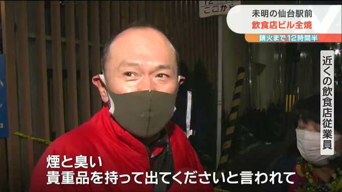 現場は、JR仙台駅西口に近い飲食店が多く建ち並ぶ場所で、消火活動は夜を徹して行われました。