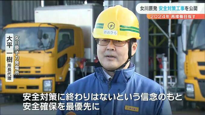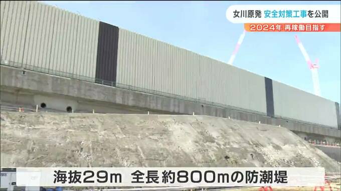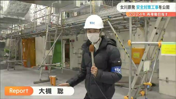 東北電力は2024年の再稼働を目指し、女川原子力発電所2号機の安全対策工事を進めています。工事の完了までおよそ1年となり21日、安全対策設備の一部が報道公開されました。