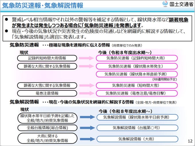 2026年の大雨シーズンから変わる防災気象情報