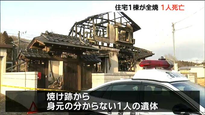 消防がポンプ車など9台を出し、火は約2時間後に消し止められましたが、木造2階建ての住宅1棟が全焼し、焼け跡から1人の身元の分からない遺体が見つかりました。