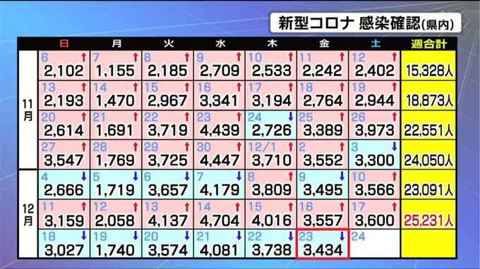 新型コロナウイルスについて、宮城県内で23日、新たに▼3434人の感染と▼7人の死亡が確認されました。