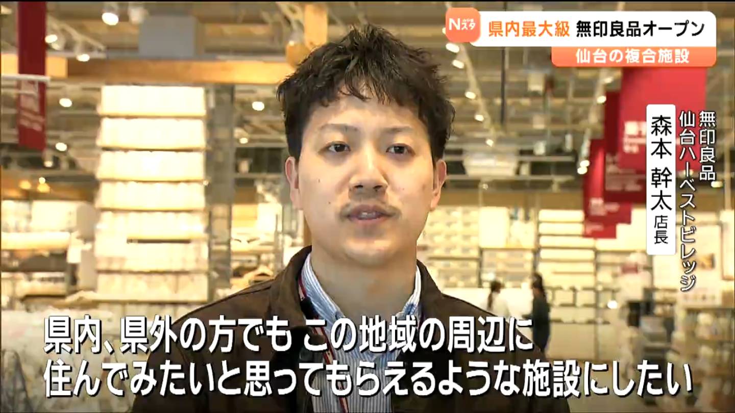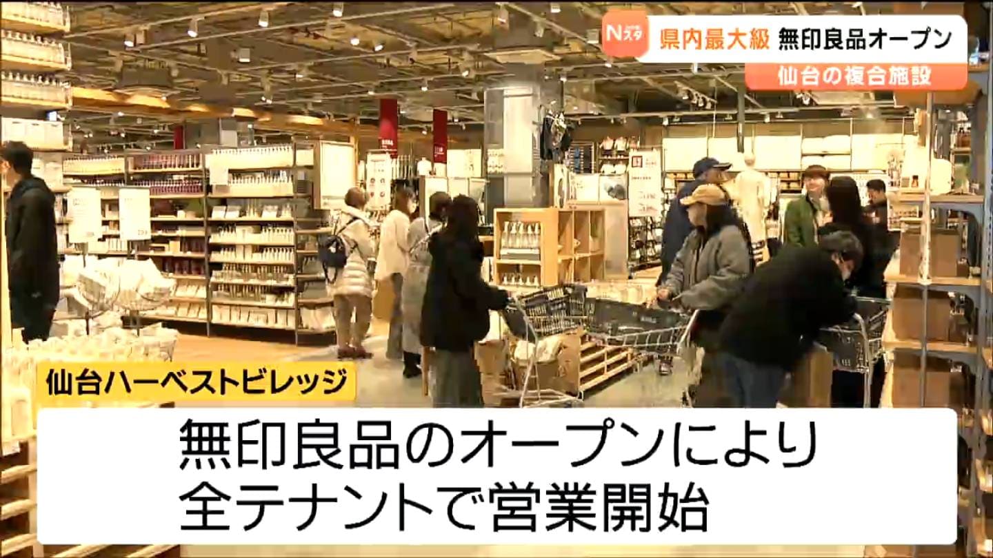仙台市若林区の複合施設「仙台ハーベストビレッジ」に生活雑貨や食品などを販売する「無印良品」が、4日にオープンしました。
