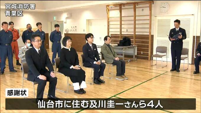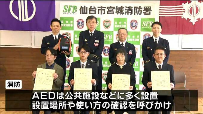 去年、JR仙山線の駅で心肺停止の状態で倒れた男性にAEDを使い救命活動をした4人に7日、消防から感謝状が贈られました。