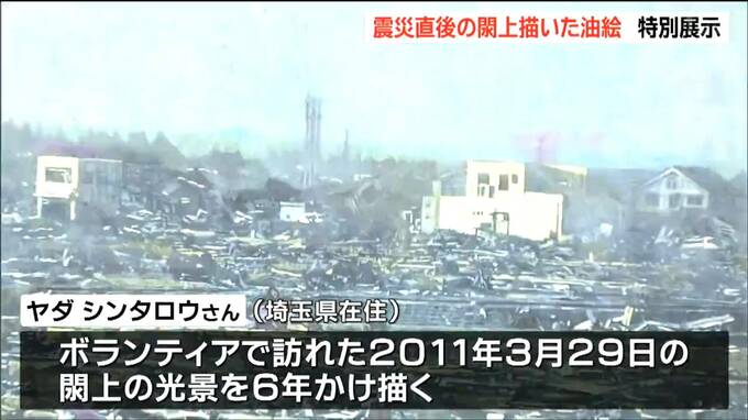 東日本大震災の発生から15年を迎えるのに合わせ、大きな被害を受けた宮城県名取市閖上で、津波の記憶を描いた油絵が展示されています。