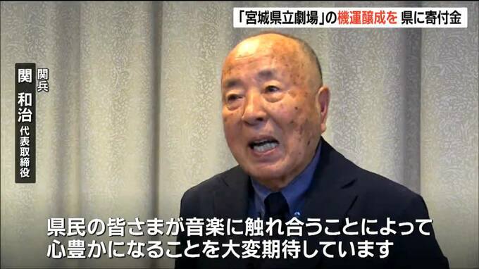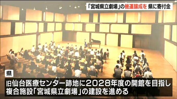 県庁では、10日、仙台市内の不動産会社「関兵」と広告会社ICHICOの社長らがそれぞれ300万円の目録を村井知事に手渡しました。県は、宮城野区の旧仙台医療センターの跡地に2028年度の開館を目指して、県民会館とNPOプラザを集約した複合施設=「宮城県立劇場」の建設を進めています。