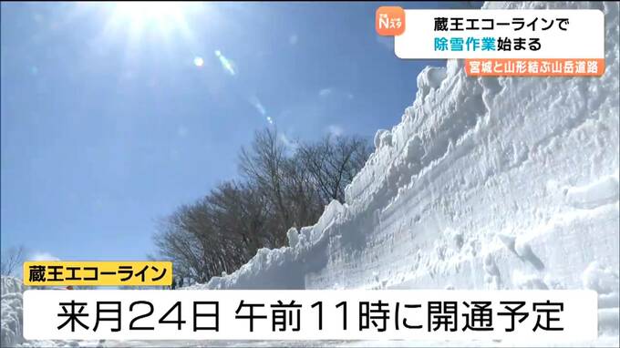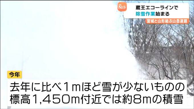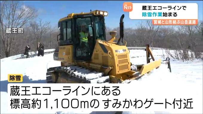 冬の間、通行止めになっていた宮城県と山形県を結ぶ山岳道路、蔵王エコーラインで開通に向けた除雪作業が3月12日から始まりました。