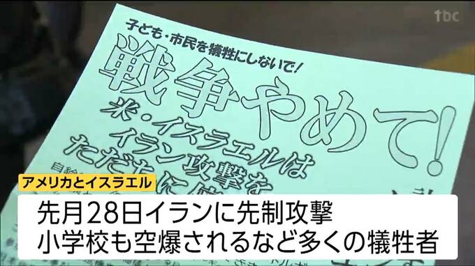 アメリカやイスラエルによるイランへの攻撃が続く中、市民団体が15日、仙台市で即時停戦を訴えました。