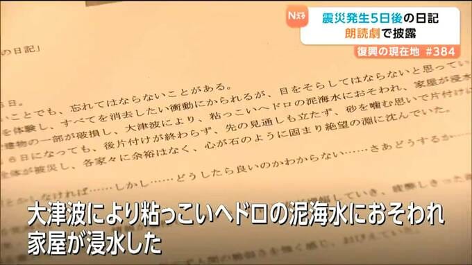 「地震で建物の一部が破損し、大津波により粘っこいヘドロの泥海水におそわれ、家屋が浸水した。」