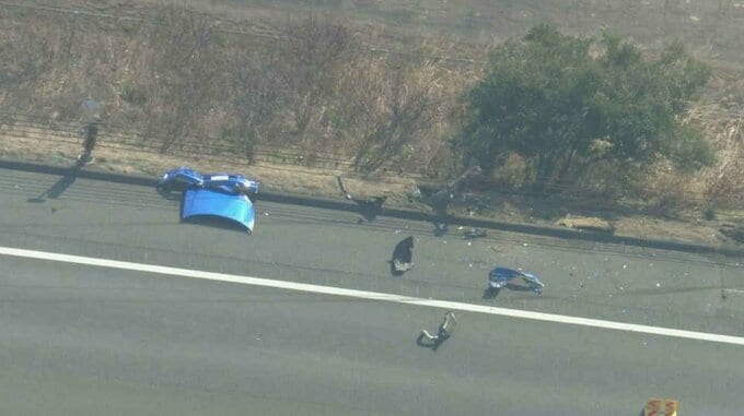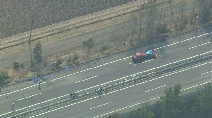 乗用車は前を走っていた車を追い越した際に誤って中央分離帯に衝突した可能性があるということです。