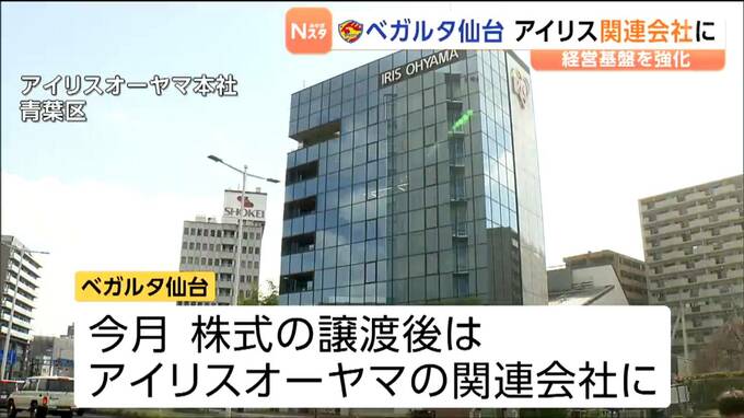 サッカーJ2のベガルタ仙台は地元企業のアイリスオーヤマが新たに筆頭株主となり、クラブがアイリスオーヤマの関連会社となる見込みであることを明らかにしました。