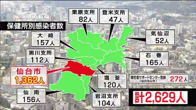新型コロナ2629人感染確認 6人死亡 4日連続で前週下回る 宮城 2022年12月30日(金) 16:22 国内 新型コロナウイルスについて宮城県内では30日、新たに2629人の感染と6人の死亡が確認されました。保健所別の感染者数です。仙台市では陽性者サポートセンターに登録した人を含め1362人の感染が確認されました。こ…