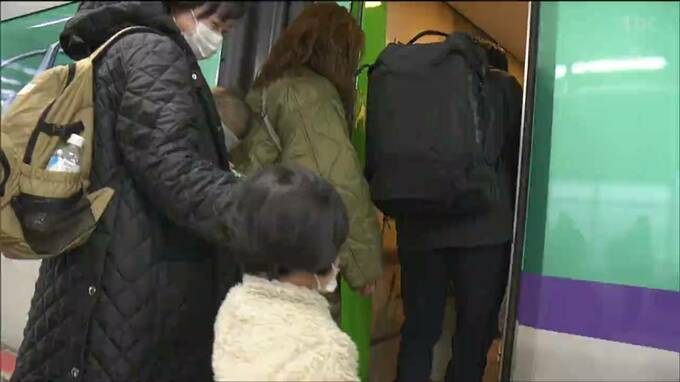 JR仙台駅の新幹線上りホームでは大きな荷物を抱えた家族連れや見送りに来た人たちの姿が見られました。