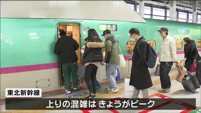 JR東日本によりますと東北新幹線上りの混雑は3日がピークで午前10時現在の乗車率は自由席が最大40%で指定席はほぼ満席となっています。