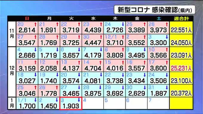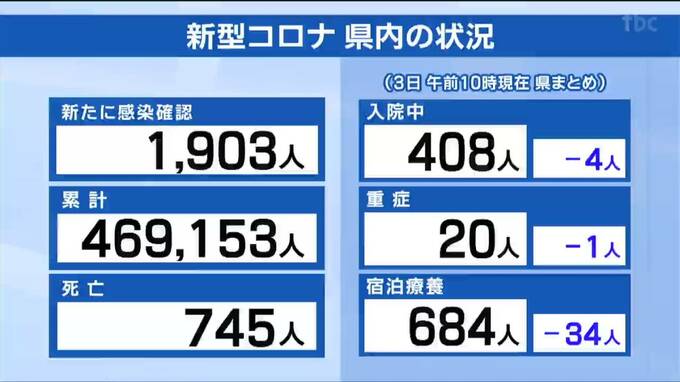 新型コロナウイルスについて県内で3日、新たに1903人の感染と3人の死亡が確認されました。