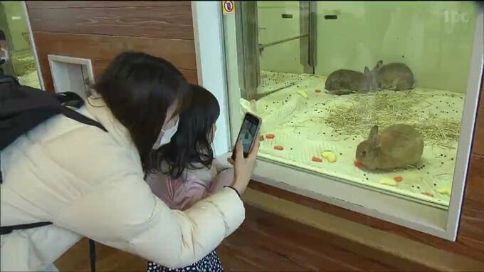仙台市の八木山動物公園で干支の引継ぎ式が行われ、今年の干支・ウサギを見に来た大勢の家族連れで賑わいました。