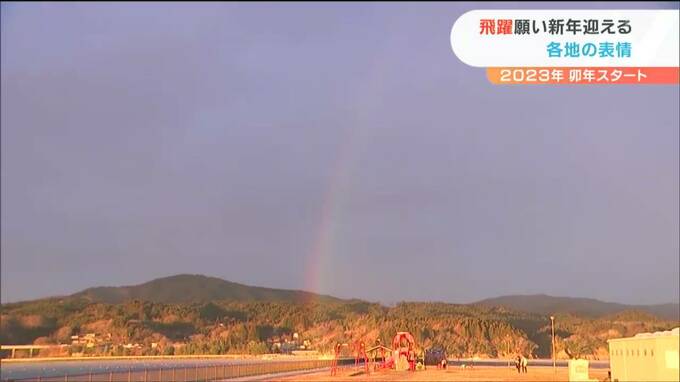 新たな一年のはじまり。多くの人が待ち望む中、太陽が海から顔を出します。宮城県南三陸町の海岸では初日の出とともに虹も。