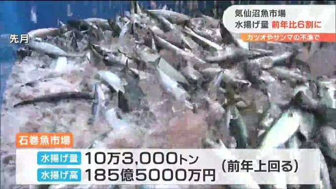 宮城県気仙沼の去年の水揚げ量は、記録的なカツオやサンマの不漁で、およそ4万6000トンと前の年の6割に留まりました。
