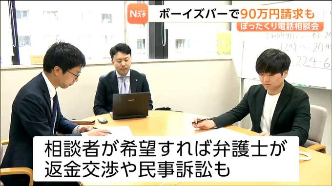 23日は正午の受付開始から恋愛感情につけ込んだ、ボーイズバーで90万円を支払わさせられたという相談が寄せられました。