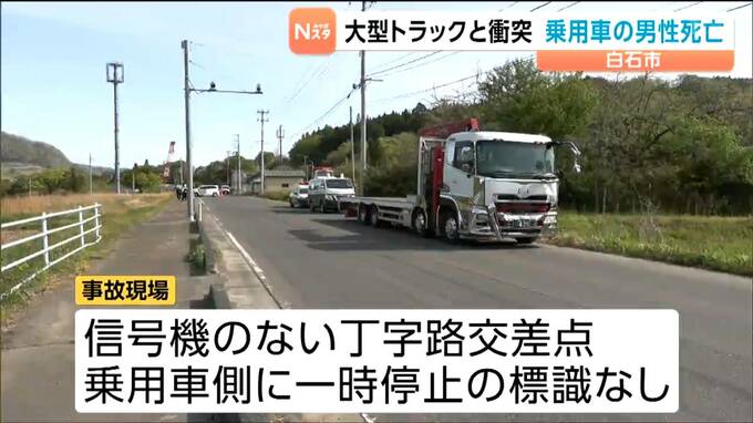 4月24日朝、宮城県白石市内の国道の丁字路交差点で大型トラックと乗用車が衝突し乗用車の男性が死亡しました。
