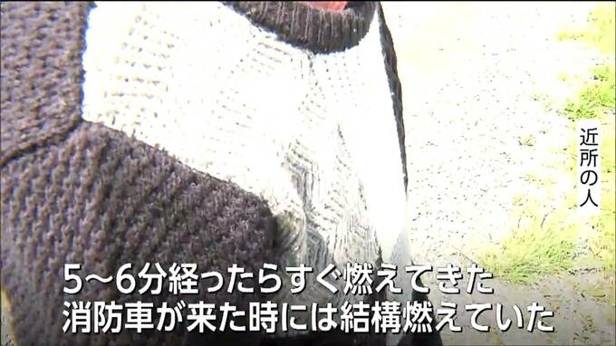 近所の人「5~6分経ったらすぐ燃えてきた。消防車が来た時には結構燃えていた」