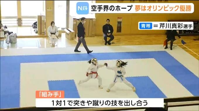 一方、1対1で突きや蹴りなどの技を出し合う「組み手」。