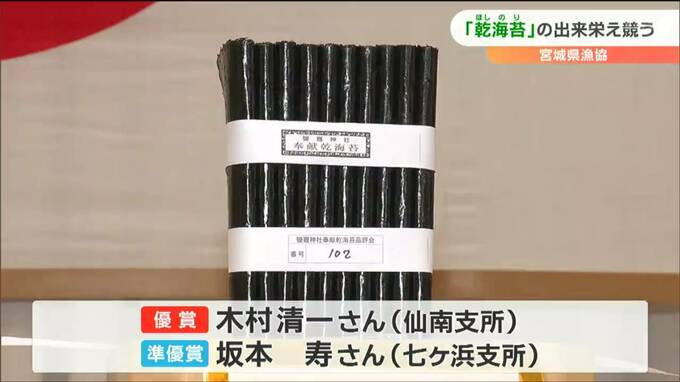 宮城県産の乾海苔の出来栄えを競う品評会が開かれました。上位2点に選ばれた海苔は2月、皇室に献上されます。