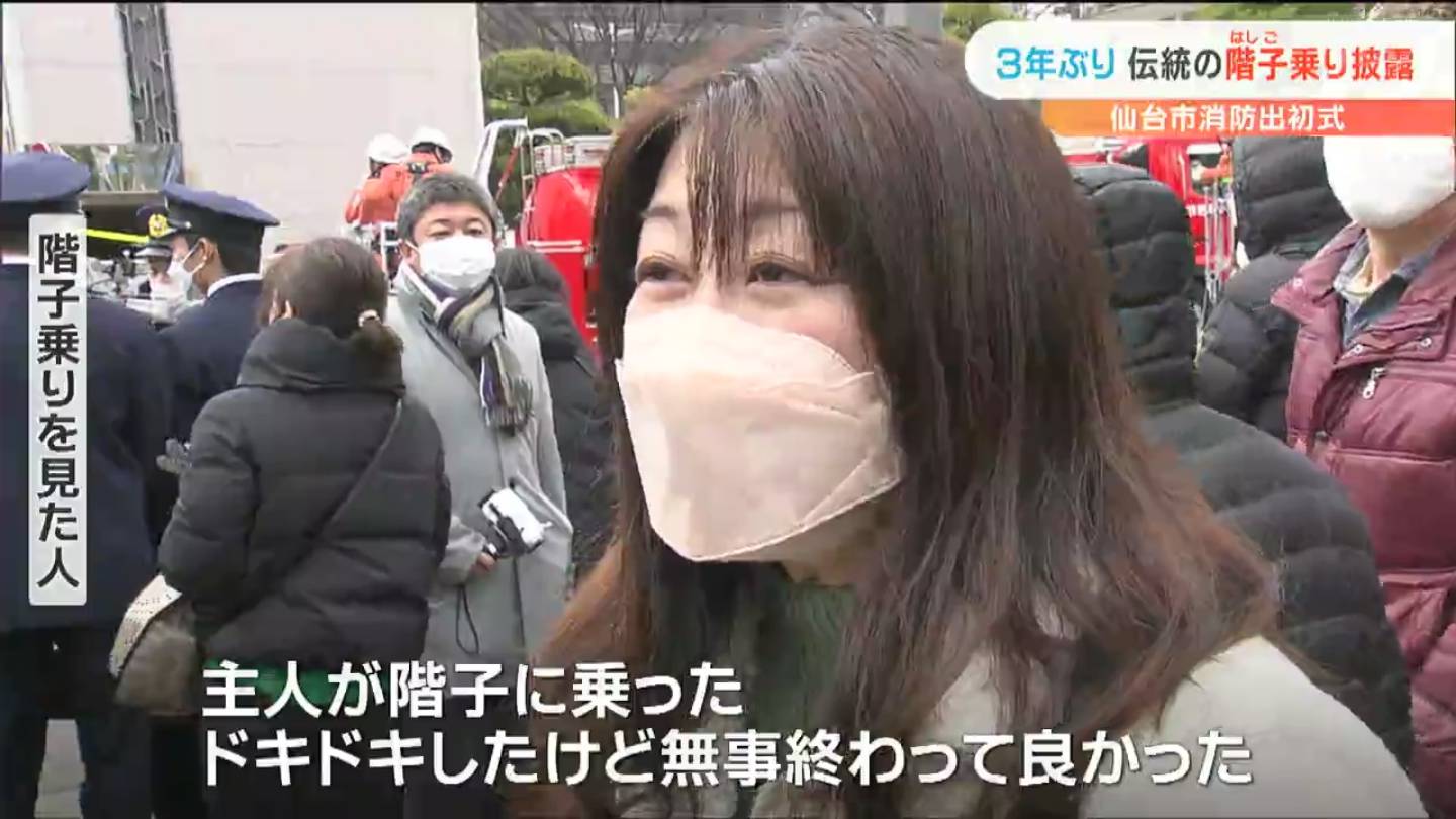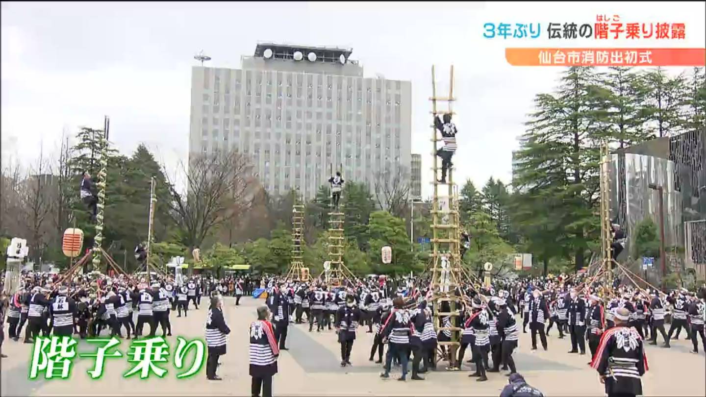 新春の恒例行事の仙台市消防出初式が6日、行われました。新型コロナウイルスの感染拡大で2年連続中止されてきた伝統の「階子乗り」が3年ぶりに披露されました。