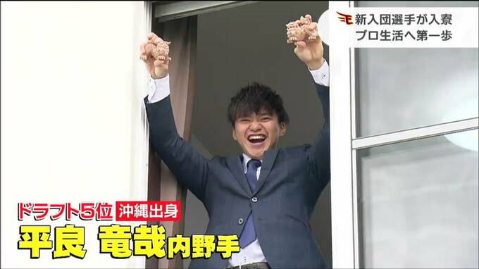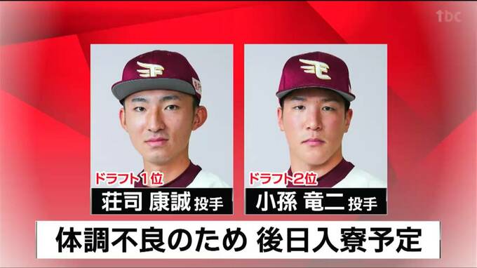 なお、新人選手10人のうち6日入寮したのは8人で、ドラフト1位の荘司投手とドラフト2位の小孫投手は体調不良のため入寮せず、快復しだい入寮するということです。