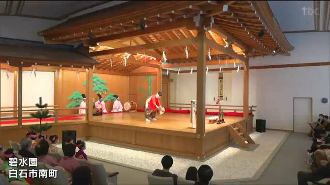 宮城県白石市に古典芸能を伝承する碧水園で、今年1年の稽古の精進や上達を祈願する「舞台びらき」が8日、行われました。