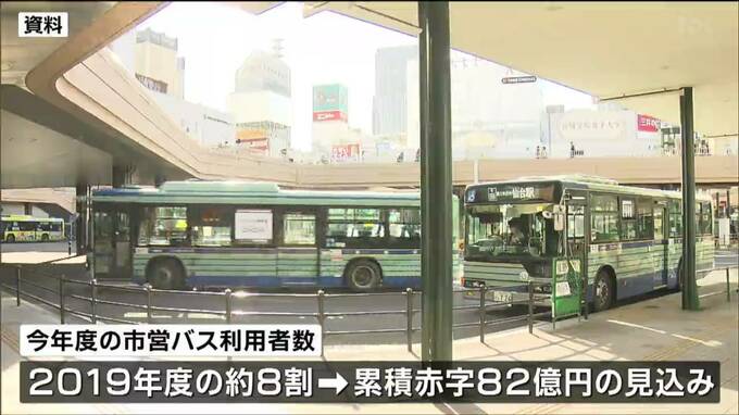 仙台市交通局によりますと、市営バスの利用者数は新型コロナの影響で減少し、今年度はコロナ禍前の2019年度のおよそ▼8割にとどまっていて、今年度の累積赤字は▼82億円に上ると見込まれています。
