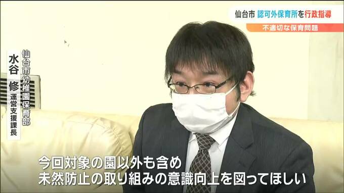 仙台市の認可外保育所で、保育士が園児に下着姿のまま食事をさせるなどの不適切な行為があった問題。仙台市はその後の調査で、園児の頬をつねったり胸を小突いたりする不適切な行為が新たに確認されたとしてこの保育所を行政指導しました。