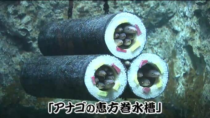 SNSで2.8万いいね!水族館に「アナゴの恵方巻」水槽が登場 仙台 2023年1月12日(木) 11:50 国内 節分の日を前に、仙台市の水族館では恵方巻にちなんだ水槽が展示され、話題を集めています。仙台市宮城野区の仙台うみの杜水族館で展示が始まったのは、「アナゴの恵方巻水槽」です。恵方巻に見立てて筒状にくりぬ…