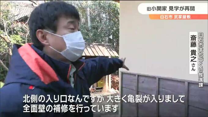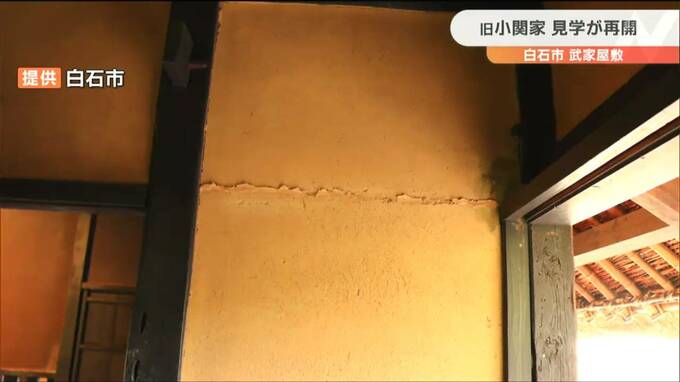 白石市の武家屋敷・旧小関家は去年3月に発生した地震の影響で、屋敷の中の壁面に亀裂や外壁がはがれるなどの被害を受けました。
