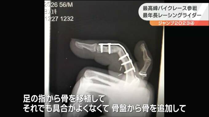 「ハンドルを持ったまま地面にすってしまったので、(薬指の)骨がほぼなくなってしまった。足の指から骨を移植して、それでも具合が良くなくて、骨盤から骨を追加して、それで骨を作ってハンドルを握れるようになって」
