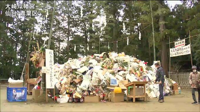 無病息災や家内安全を祈る小正月の行事「どんと祭」が行われるのを前に14日朝、宮城県内の神社では、正月飾りなどを持ち込む人の姿が見られました。