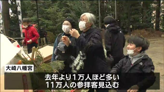 仙台市青葉区の大崎八幡宮でも、参拝客がしめ飾りや破魔矢などを手に次々に訪れました。