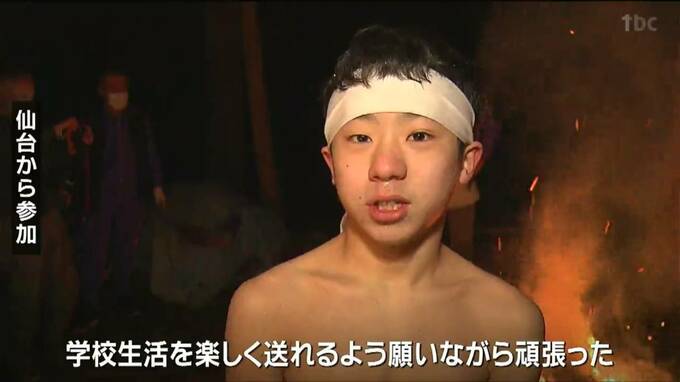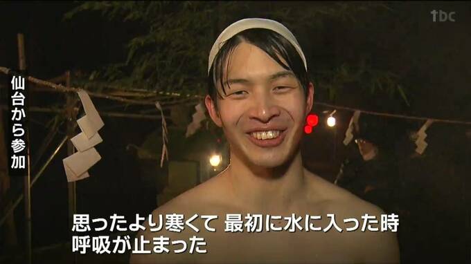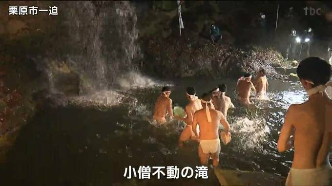 宮城県栗原市で15日夜、滝に打たれて身を清める小正月の行事、寒中みそぎが行われ、参加者が今年1年の無病息災を祈りました。