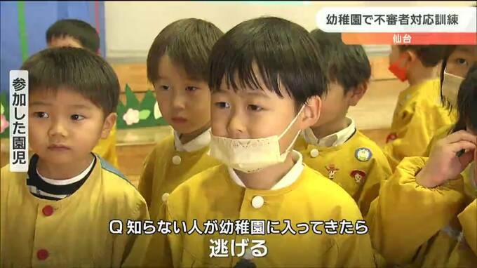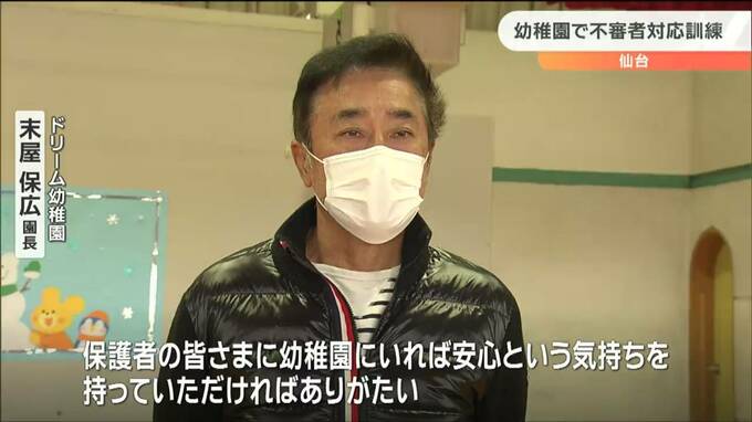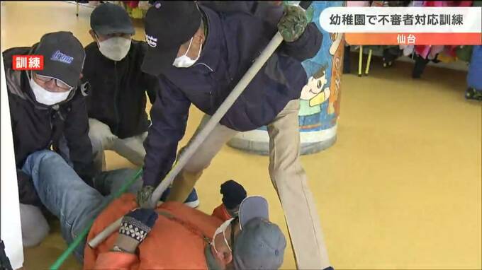 仙台市内の幼稚園で、不審者の侵入を想定した訓練が行われ、参加者が安全確保の対応を確認しました。