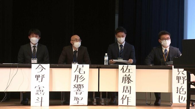 今年2月に石巻市で開かれた「Team大川未来を拓くネットワーク」の設立集会。「チーム大川」の意思を継ぎ、只野さんが代表として立ち上げた団体の門出に、3人のメンバーが決意を述べた。