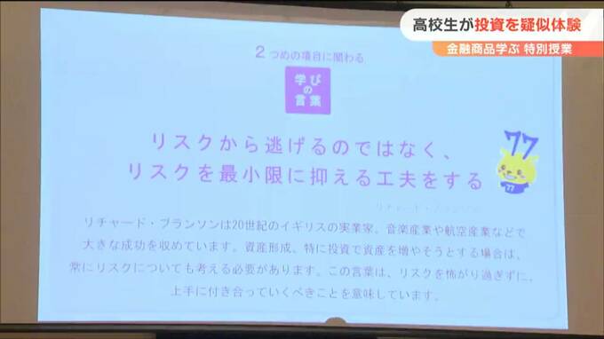 金融商品について学ぶ特別授業が仙台市内の高校で行われ、生徒たちが投資を疑似体験しました。