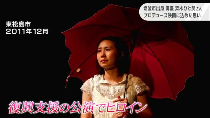 現在、東京を拠点に活動する舞木さん。小学2年生の時に観たローマの休日のオードリー・ヘプバーンに憧れ、俳優を志しました。俳優としての原点は、被災地での舞台でした。2011年、当時、京都の大学で映画学科を先行していた時のことです。その年の12月、大学の仲間たちと復興支援のために東松島市を訪れ、演劇の公演でヒロイン役を務めました。