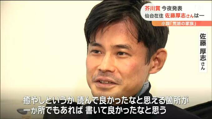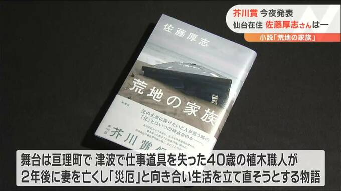 第168回芥川賞が19日夜、発表されます。候補5作のうち、仙台市在住の佐藤厚志さんの小説「荒地の家族」も選ばれていて、仙台から芥川賞作家が誕生するか選考結果が注目されます。