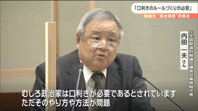 宮城県議会は政治倫理の在り方についての研修会を開き、有識者が口利きに関するルールづくりの必要性を解説しました。